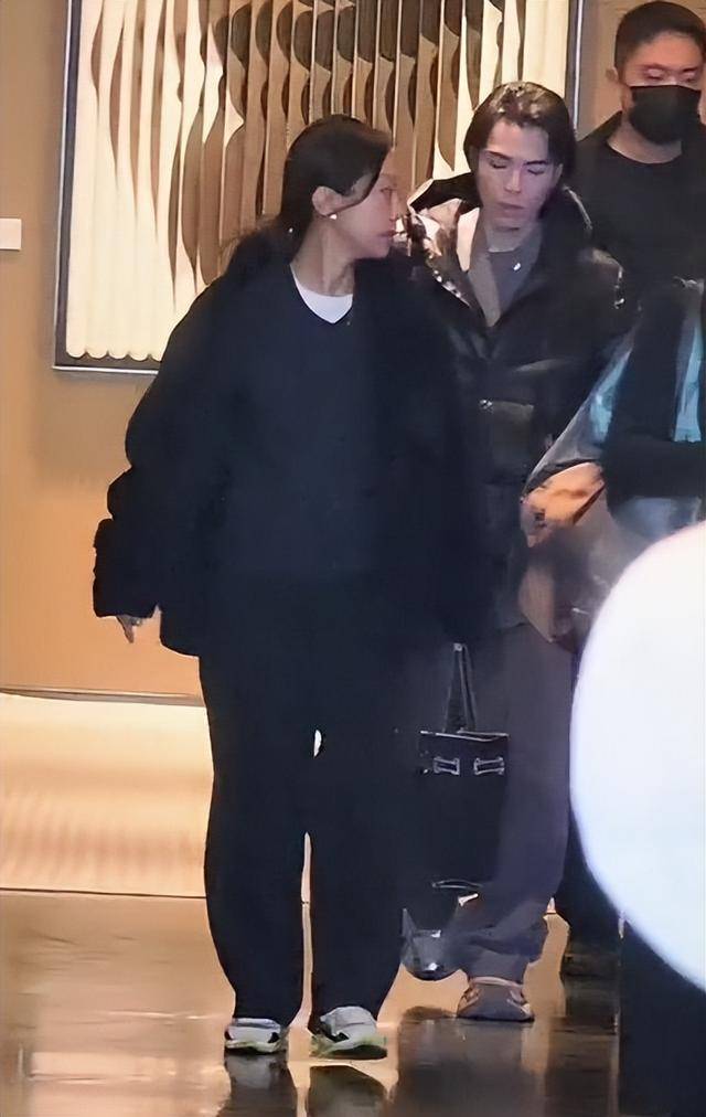 她穿了一件毛绒衣服,里面搭着羽绒服内胆,下身是黑色裤子,手里拎着一个黑色手提包,全身上下没有多余的装饰,脸上更是一点妆容都没有,纯纯的素颜出镜。