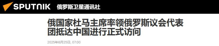 俄罗斯卫星通讯社8月25日消息称,俄罗斯国家杜马会议主席维亚切斯拉夫·沃洛金率领俄罗斯议会代表团已于8月25日抵达中国并正式访问。