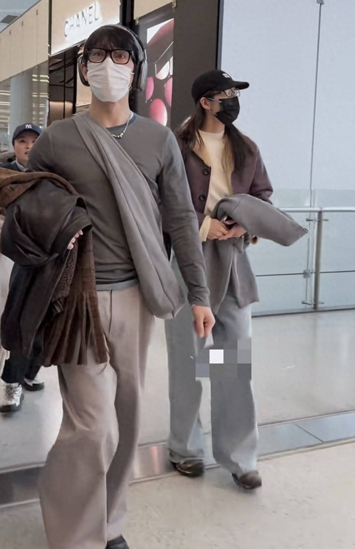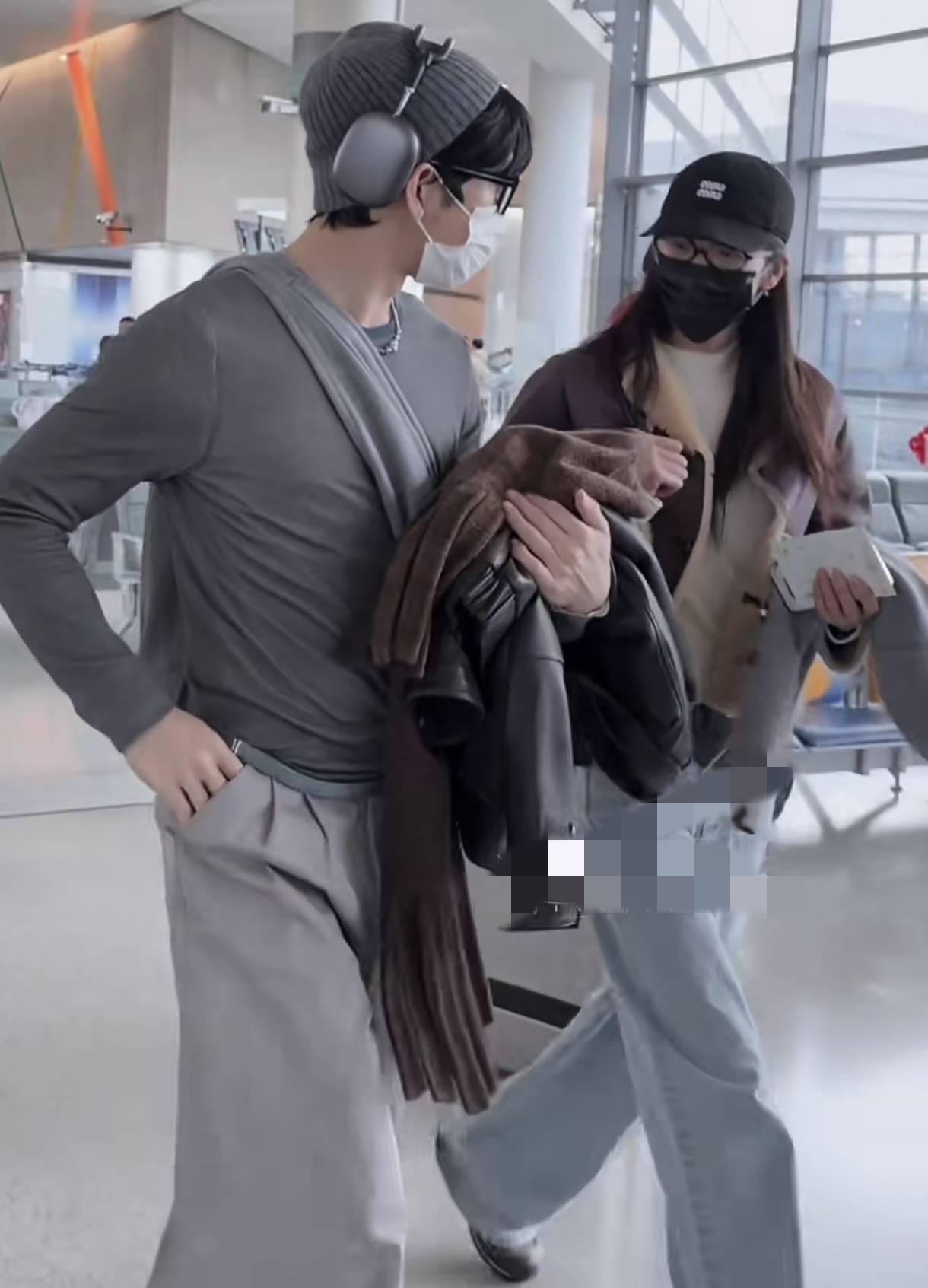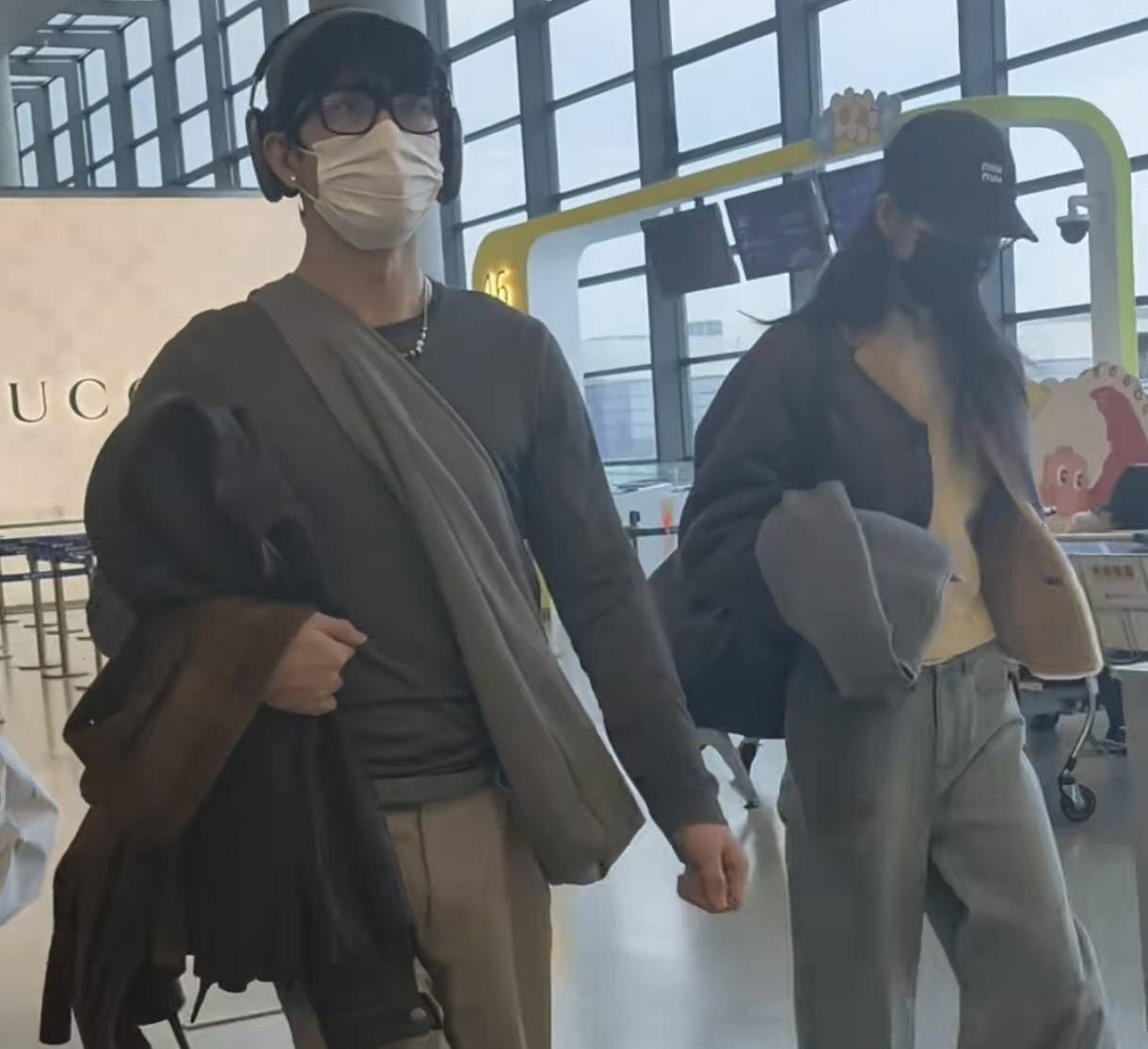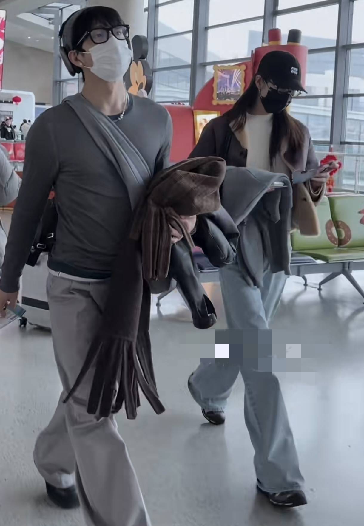 两人边走边聊,想必是在沟通乘坐飞机的相关事宜。此次现身机场,应该是趁着过年假期一同出游,平日里他们都很忙碌,难得有共同的假期,正好借此机会好好放松休息。